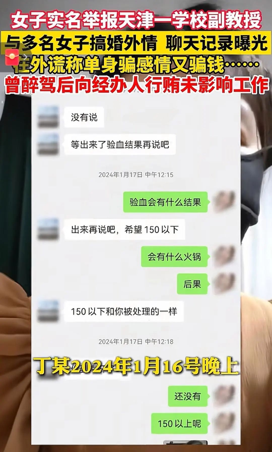 舉報人指控丁某長期偽裝單身,辰工通過感情欺騙多名女性,業(yè)職業(yè)學(xué)院教騙取錢財共計(jì)240余萬元,師丁并在學(xué)校對面小區(qū)長期包養(yǎng)另一名女性。外情